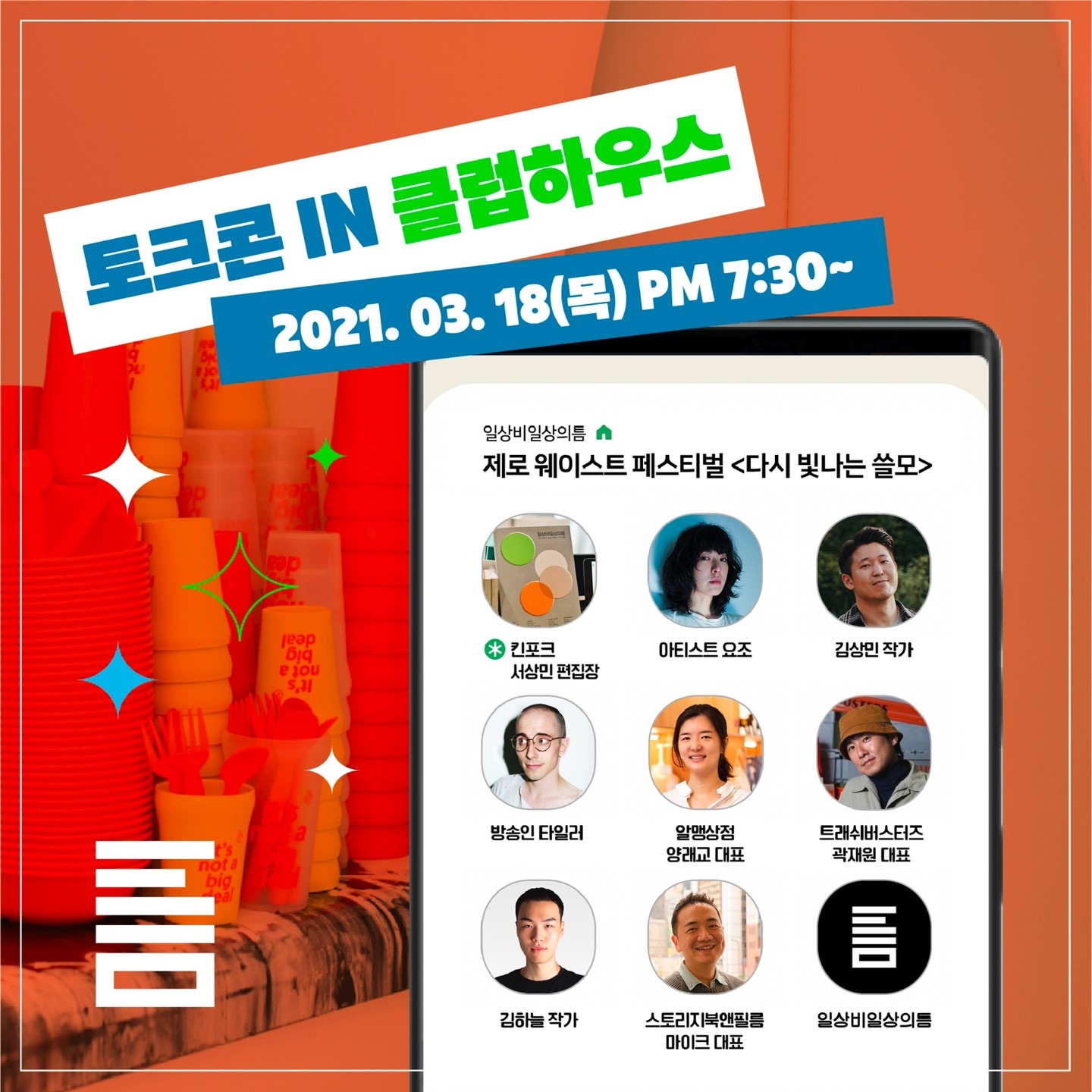 지난 3월 18일 저녁 7시 반 클럽하우스에서 틈의 ‘다시 빛나는 쓸모’ 토크 콘서트가 진행되었습니다. 진행 중 한국어로 개설된 방 가운데 가장 높은 동접자 수를 기록하기도 하였습니다. 토크콘서트는 성공적으로 진행되었지만, 스트리밍되기까지 아직 초기 플랫폼 단계인 ‘클럽하우스’를 토크콘서트 라이브 채널로 선택하는데 수많은 질문이 따라왔습니다.