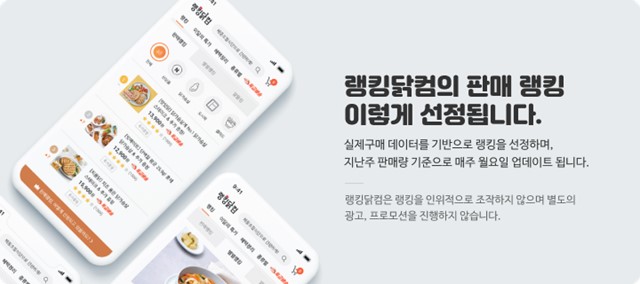 랭킹닭컴 내에는 대한민국 300개 이상의 간편 건강식 브랜드가 입점해 회원의 선택을 받고자 치열하게 경쟁합니다. 또한 건강식을 신경 쓰는 100만 회원이 구매하는 정보를 바탕으로 ‘객관적 랭킹’이 업데이트되기 때문에 신뢰도 갑니다.