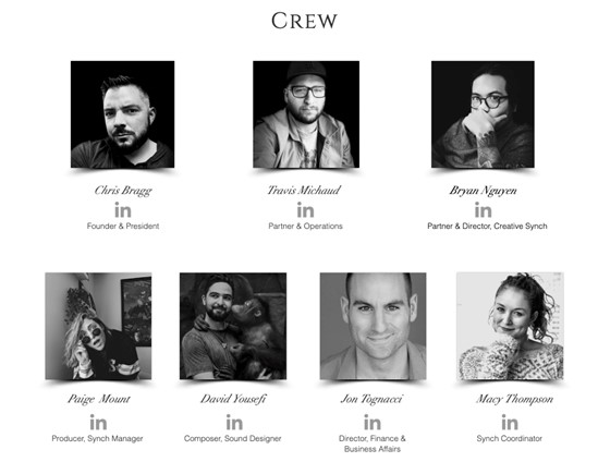현재 고스트라이터 뮤직에는 창업자인 크리스 브랙을 필두로 크리에이티브 디렉터 브라이언 뉴엔, 기술 담당 트래비스 미카드, 프로듀서 페이지 마운트와 작곡가 데이빗 요세피 등 총 8명의 크루가 일하고 있습니다.