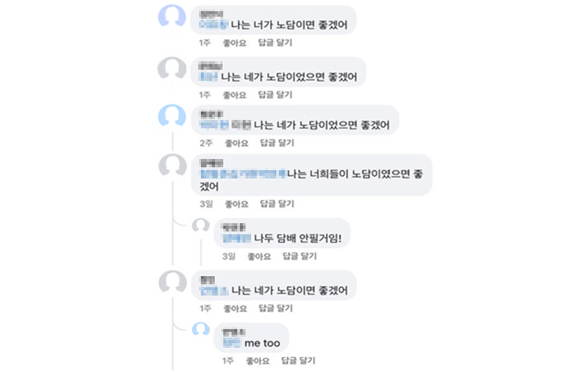 진심이 통했을까요? 청소년과 대중들의 진심이 자발적으로 쏟아져 나오고 있습니다. 광고가 공개되자 SNS에는 ‘@000 네가 노담이면 좋겠어’가 수백 건 넘게 생겨났죠.