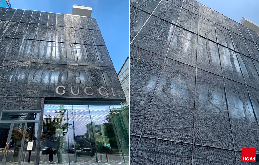 특히 이번에 플래그십을 만들면서 국내 아티스트들과의 콜라보레이션도 적극적으로 진행하였는데요. 박승모 작가와 협업한 구찌 가옥의 외부 파사드 건축은 구찌가옥을 대표하는 이미지가 되었습니다. 멀리서 보면 회화처럼 보이지만 사실은 스테인리스 스틸 와이어 조각인 이 작품은 상상의 숲에서 영감을 얻은 ‘환(幻·헛보임)’을 주제로, 실재와 허상의 경계가 무너지는 찰나를 와이어의 중첩을 통한 명암의 대비로 표현하였다고 합니다. 낮과 밤 그리고 빛과 조명으로 다른 이미지를 만들어내어, 문화의 다채로움을 반영하고자 하는 브랜드의 이미지를 대변합니다. 실내로 들어가면 화려한 복고풍의 공간이 펼쳐지는데요. 1~4층으로 구성된 공간은 각 층마다 의자를 두고 제품과 함께 인터랙티브 아트 등 체험 공간으로 구성되어 있습니다. 추후 5층에는 구찌 레스토랑이 전 세계에서 4번째로 오픈할 예정으로 음식과 문화 경험이 결합된 구찌만의 문화 공간으로 운영되지 않을까 기대합니다.