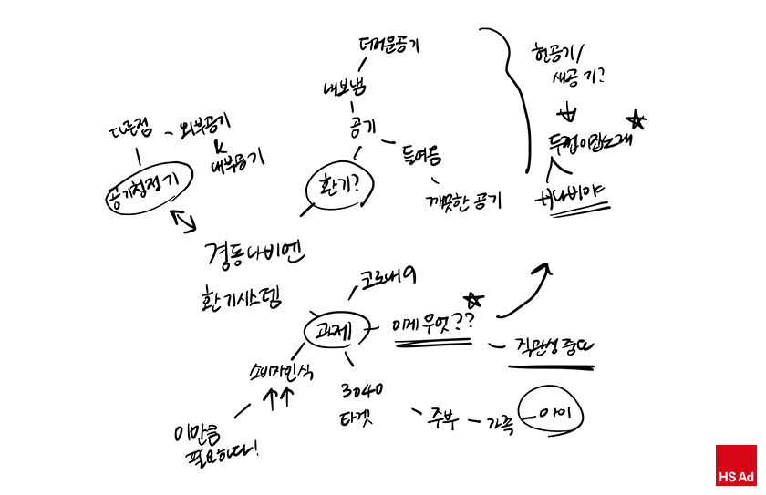 “저의 아이디어에 대해 의견을 물을 사람이 없다는 점이 조금 아쉽긴 했지만 무엇보다 제시된 과제에 충실하며 제가 목표하는 광고를 만드는 것에 집중했습니다. 경동나비엔 캠페인 과제는 흔히 아는 공기청정기와는 다른 환기시스템으로 저조차도 생소했는데요. 그래서 먼저, 저와 같이 환기시스템 자체를 잘 모르는 사람들도 누구든지 ‘아, 환기시스템이 이런 시스템이구나’라는 생각이 들 수 있는 짧지만 직관적인 광고를 목표로 잡고 진행했습니다. 그리고 ‘계속되는 미세먼지 이슈 속, 우리 집의 헌 공기를 주고 새 공기를 받아볼 수 있는 경동나비엔의 청정환기시스템으로 항상 상쾌한 공기가 가득한 집을 유지해보아요!’라는 메인 메시지를 전달하고자 했죠.”