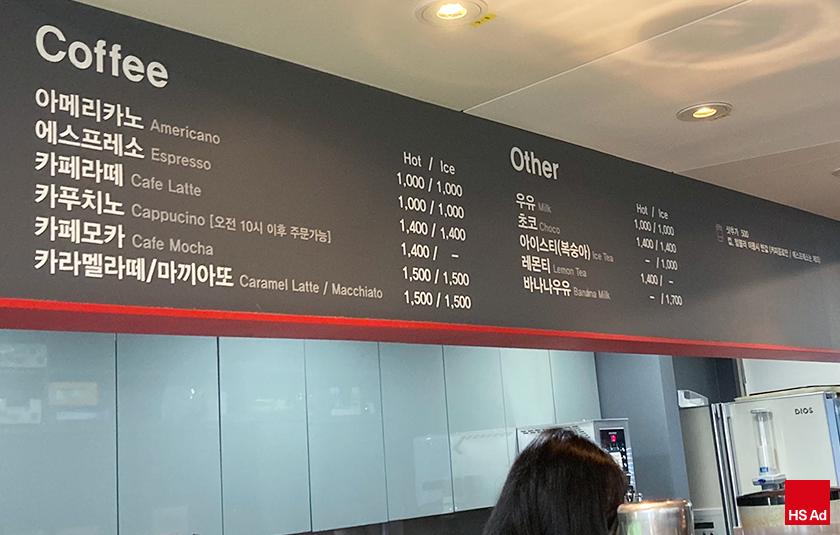 15층 사내 카페는 합리적인 가격이 가장 큰 장점이다 보니 음료 종류는 다소 한정되어 있습니다. 아메리카노, 카페라떼 등과 같은 커피류를 제외하면 논 커피로는 아이스티, 레몬티, 바나나우유 정도가 있습니다. 임직원분들이 가장 자주 드실 아메리카노를 제외하고 아이스티+샷 추가도 종종 찾는 분들이 있는데요. 의아할 수 있는 조합이지만 시도하면 실망하지 않으실 거예요!