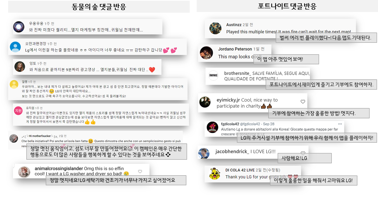 24개국이 참여하는 글로벌 캠페인이라는 점에서 국가 커버리지를 우선적으로 고려하였고, 건강가전 캠페인과의 연계성을 고려하여 집과 가전을 잘 표현할 수 있는 플랫폼으로서 닌텐도의 육성 시뮬레이션 게임인 ‘모여봐요 동물의 숲(동물의 숲)’과 에픽게임즈의 슈팅게임인 ‘포트나이트’를 선정하였고 LG 건강가전 가상공간을 구현했습니다.