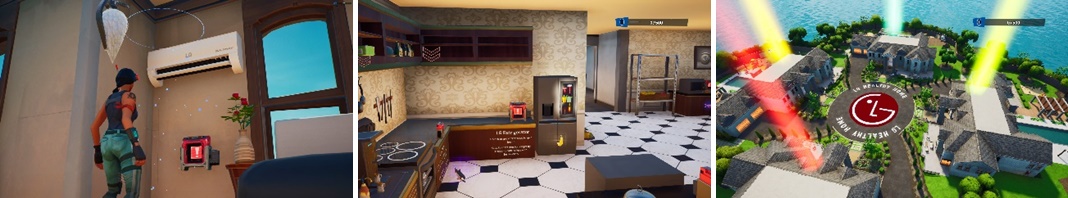 남미/유럽 시장 타깃의 세계적인 인기 게임 포트나이트에서도 LG Healthy Home 맵을 만나볼 수 있습니다. 플레이어들은 맵 내 곳곳에 배치된 건강가전 제품들을 모두 Unlock 함으로써 LG 건강가전 맵 미션을 달성하는 게임입니다. 이 과정에서 회복 아이템을 획득하고, 아이템들을 활용하여 LG Battle Square에서의 전투를 통해 LG 광장을 점령하는 박진감 넘치는 배틀 게임입니다.