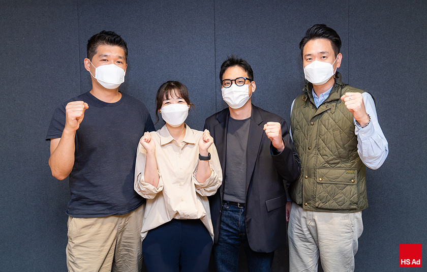 “먼저 박성용 아트디렉터는 저희 팀 분위기메이커인데요. 소위 ‘약 빤’ 아이디어를 냅니다. 개성이 강해요. 김은경 카피라이터는 카피라이터지만 비주얼 욕심도 많은 멀티플레이어이고요. 다른 대행사에서 온 김기문 아트디렉터는 저희 팀에 결이 다른 아이디어를 수혈하고, 마지막으로 박수 카피라이터는 저희 팀 막내인데요. 무수한 가능성을 지닌 기대주입니다.”