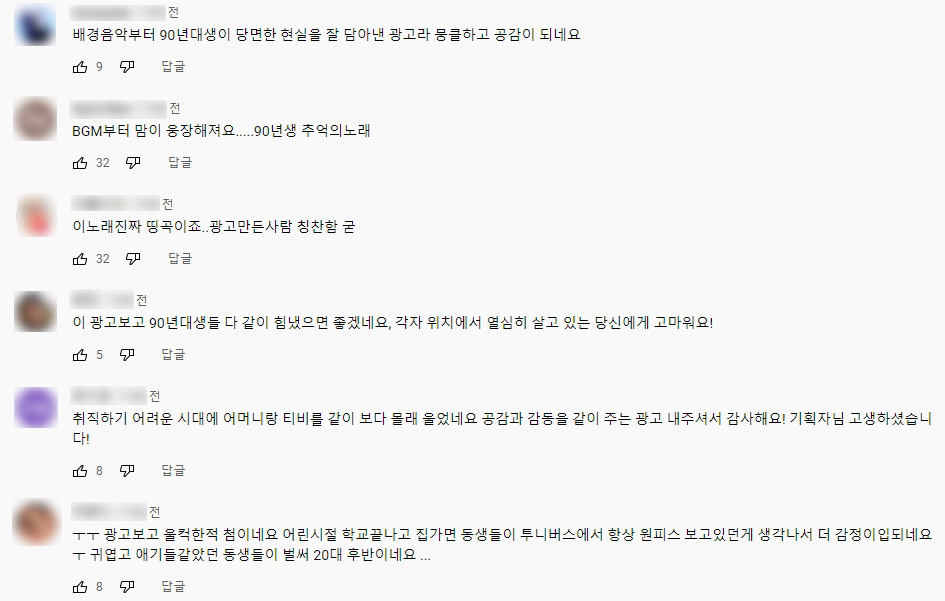 해당 곡은 ‘미’와 ‘레’ 음계만을 사용해 만들어졌으며, 위트 넘치는 언어유희로 LG그룹이 그리는 더 나은 ‘미래’를 소개하는데요. 광고 뒤에 이어지는 엔딩 크레딧 또한 하나의 킬링 포인트로 꼽히며 영상을 끌 수 없게끔 만듭니다. 유튜브 댓글에는 광고 기획자와 이은송 아티스트에 대한 칭찬이 쏟아졌는데요. 국내외 TV 광고를 소개하는 ‘오광TV’ 유튜브 채널에는 해당 광고를 1시간 동안 반복하는 영상이 올라오기도 하며 화제성을 인증했습니다.
