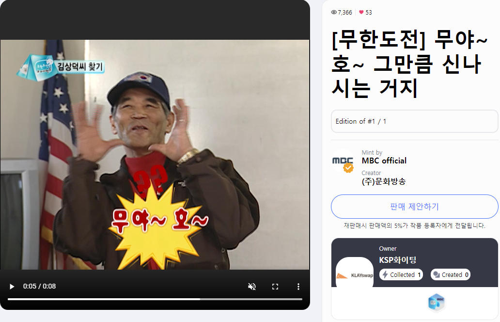 요즘 뜨는 밈, 12월 편에서 소개해드렸던 무한도전의 “무야호” 역시 밈이 되면서 많은 SNS 채널에서 쉽게 찾아볼 수 있었는데요. 최근, MBC는 무야호 NFT를 발행하며 MBC가 출시한 NFT 중 최고가인 950만 원에 낙찰되었습니다. 이처럼 이미 온라인상에서 활발하게 사용 중이었던 영상, 자료, 지적 재산권, 작품 등을 NFT로 발행하면 새로운 수익을 얻을 수 있게 되고, 이는 곧 하나의 경제 수단으로 발전하게 되는 것입니다.