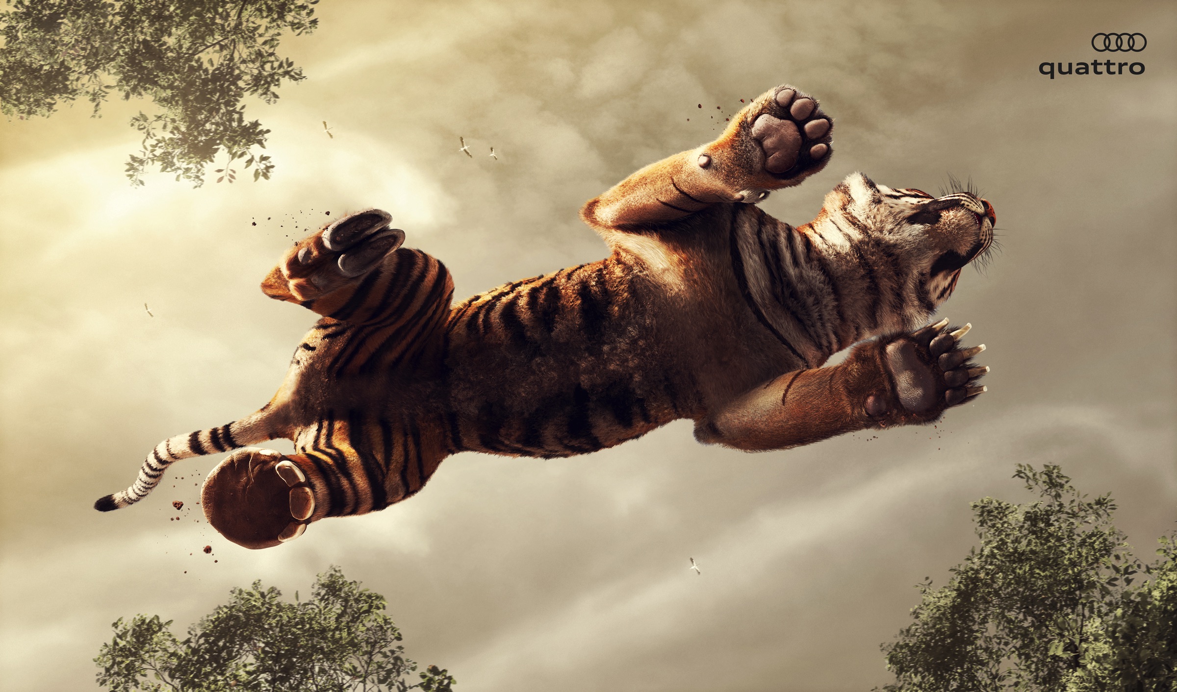 터키 아우디는 미끄럽고, 가파르거나 위협적인 오프로드 등을 포함한 모든 도로 조건에 적응하는 콰트로의 적절한 파워 분배와 민첩성을 육식동물에 비유했습니다. 이 인쇄 광고는 호랑이와 늑대의 두 버전으로 제작되었는데요. 4개의 발을 모두 다른 모습으로 표현해 특징을 아주 잘 담아냈죠.