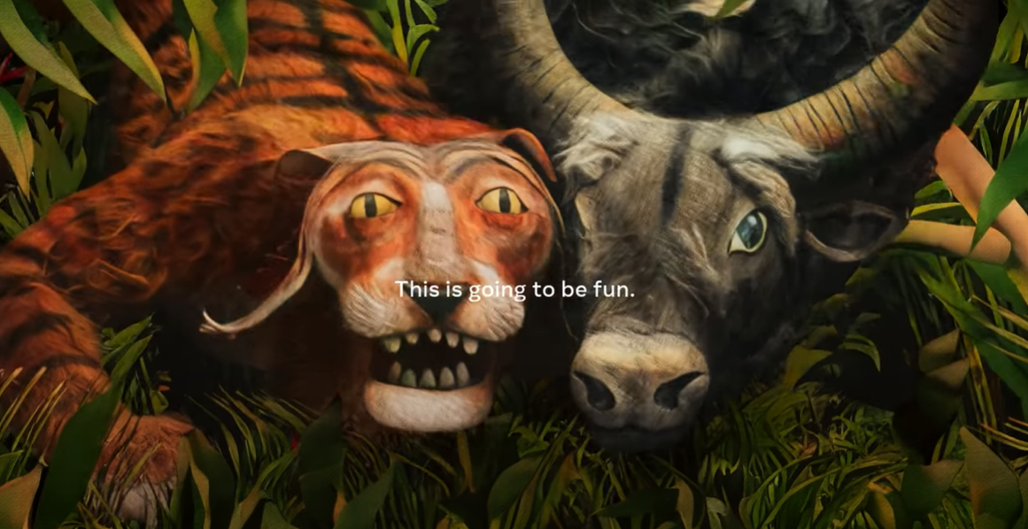 한 달 전 공개된 메타(Meta, 구 페이스북)의 최초 브랜드 캠페인은 공개 직후 41만 회를 기록할 만큼 많은 관심이 쏠렸는데요. 메타는 해당 광고에서 프랑스 예술가 앙리 루소의 1908년 작품인 ‘Fight between a Tiger and a Buffalo’에서부터 시작됩니다.