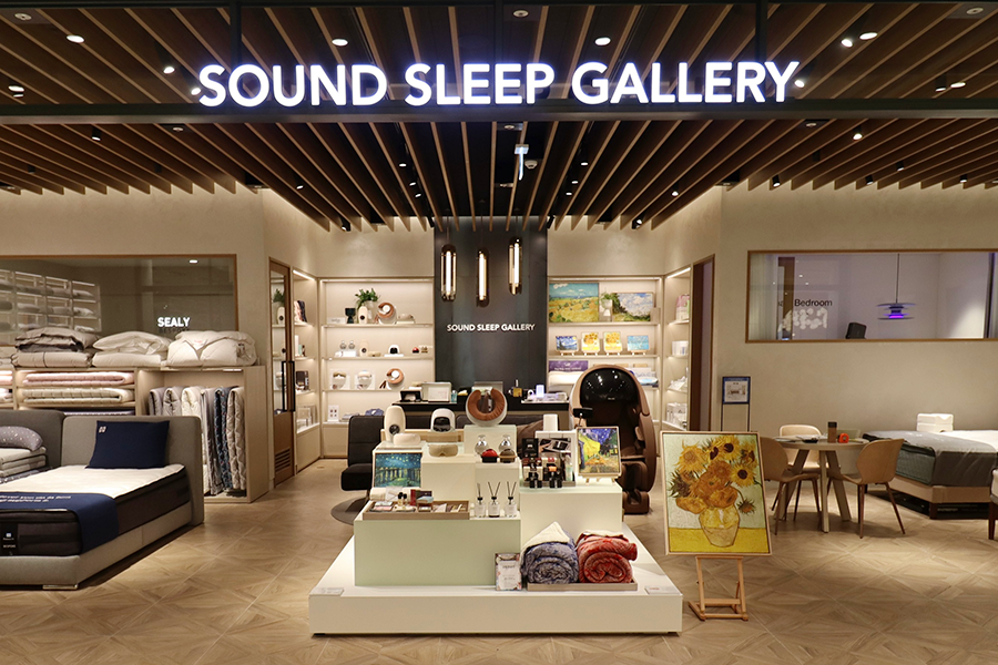 신세계는 그동안 오프라인 매장에서 다양한 글로벌 명품 침대 브랜드를 직접 경험해 볼 수 있는 ‘매트리스 체험존’을 포함해 온라인 플랫폼 ‘굳닷컴’을 통해 숙면 요가, 수면 음악을 소개하는 등 다양한 수면 서비스를 선보여왔습니다. 그리고 지난해 8월, 대전에 위치한 신세계 아트&사이언스에서 백화점 업계 최초로 수면과 관련된 용품만 모아 판매하는 숙면 전문 편집숍 ‘사운드 슬립 갤러리(Sound Sleep Gallery)’를 오픈해 화제를 모았습니다. 수면에 꼭 필요한 침대부터 토퍼, 베개, 조명은 물론 침실에서 적용 가능한 스마트홈 사물인터넷(IoT) 서비스까지 소개하며 숙면 체험에 차별화된 서비스를 제공합니다.