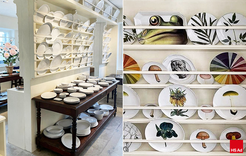 브랜드는 18~19세기 프랑스 문화에서 영감을 바탕으로 식기류를 비롯 다양한 제품을 선보이고 있는데요. 대표 제품은 에마유(emaille)를 씌운 세라믹으로 여러 장인들이 수작업으로 만들기에 제품마다 미세하게 다른, 유니크함으로 유명합니다. 파리지앵의 전통성에 현대적인 아름다움을 더한 제품을 지향하는 만큼, 이번 플래그쉽스토어의 공간에서도 고유의 아이덴티티를 유지하고자 하는 브랜드의 세심한 노력이 많이 느껴졌습니다.