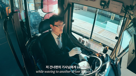 영상을 보다 보면 깎아질 듯 위태로워 보이지만 익숙한 자태로 핸들링하는 버스 기사의 손짓 연기가 압권인데, 실제 촬영 현장에서도 이 연기를 본 스탭들의 반응이 좋았습니다. 하지만 사실 이 분은 프로 연기자가 아닌 부산 홍보를 위해 자발적으로 촬영에 참여한 부산 시민이었는데요. 실제 산복도로를 운전해 본 사람만이 보여줄 수 있는 바이브가 그대로 표현돼 보다 진정성 있는 콘텐츠가 나올 수 있었다는 생각이 듭니다.