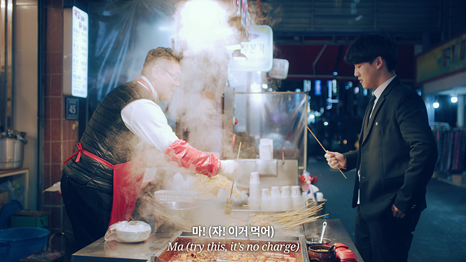 부산어묵 편에서도 역시 시민들이 연기자로 등장합니다. 바로 어묵집 상인과 학생입니다. 이 중 남학생은 무려 30개가 넘는 어묵을 먹을 때까지 매 컷마다 열정적인 연기를 보여주었습니다. (대단했어요)