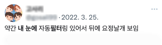 요즘 MZ세대는 '눈에 콩깍지가 씌었다'라는 말 대신에 '필터 씌었다' '필터 꼈다'라는 말로 대체하여 표현한다고 합니다.