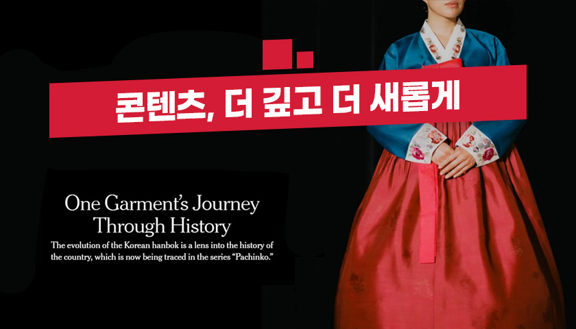 미국의 대표 일간지인 뉴욕타임스는 4월 9일 한복 특집 기사를 내보냈습니다. 제목은‘역사를 통한 의복 여행’입니다. 드라마 파친코에서 선자의 의상으로 주목받은, 한복의 역사를 되짚고 아름다움과 실용성을 칭찬하는 내용입니다. 대한민국의 2000년 역사와 함께 변천해온 ‘한국의 옷’ 임을 알렸습니다. 아무리 한복은 우리 것이라고 주장해도 세상에 쉽게 닿지 못했던 목소리, 그 어려운 일을 파친코가 효과적으로 해낸 겁니다.