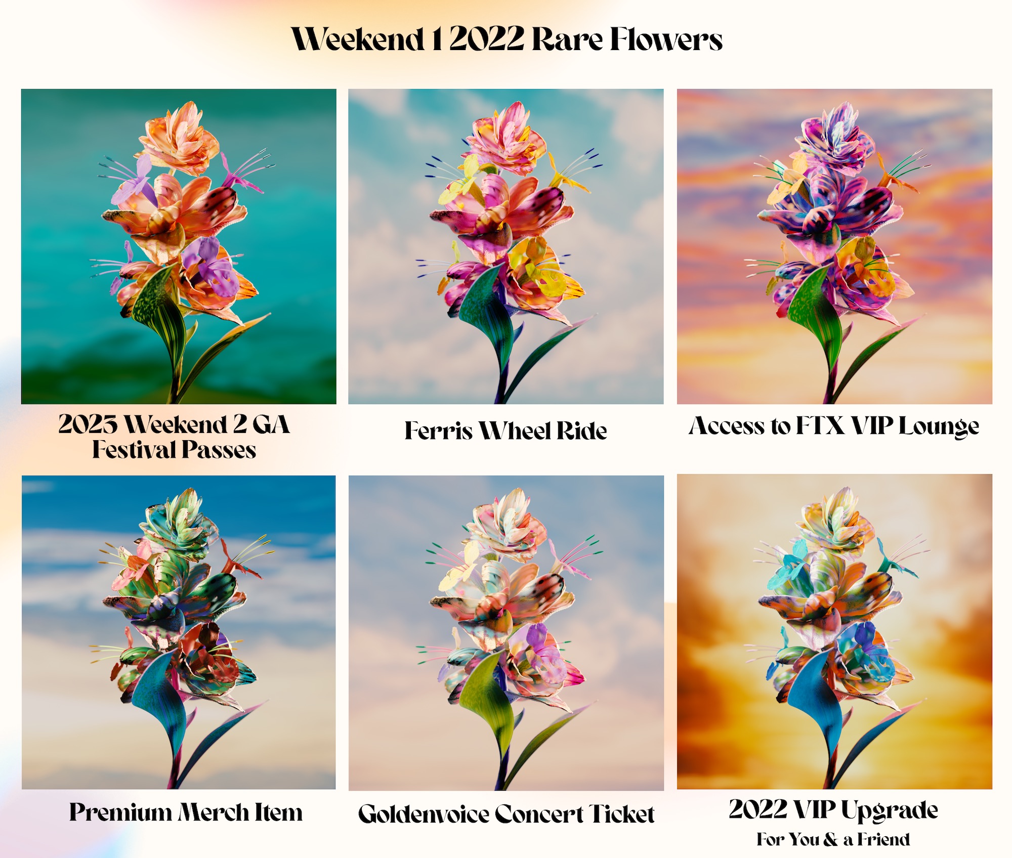 이 NFT는 거대한 사이키델릭 플라워 씨앗으로, 페스티벌 동안 금요일 아침마다 피어납니다. 이 꽃을 보여주면 한정판 상품이나 식음료 바우처를 받을 수 있고, 전용 진입로로 드나드는 통행권이 됩니다. 그리고 운 좋게 ‘rare flower'를 받으면 그에 상응하는 혜택을 받게 되죠.