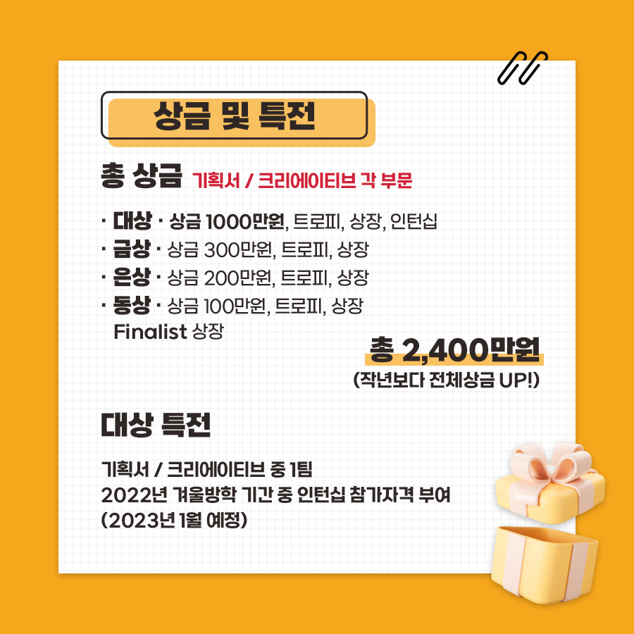 총 상금 2,400만원, 대상 상금은 무려 1,000만 원입니다!