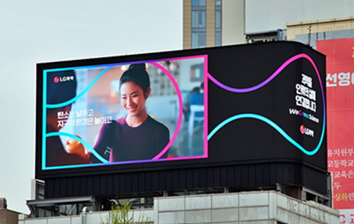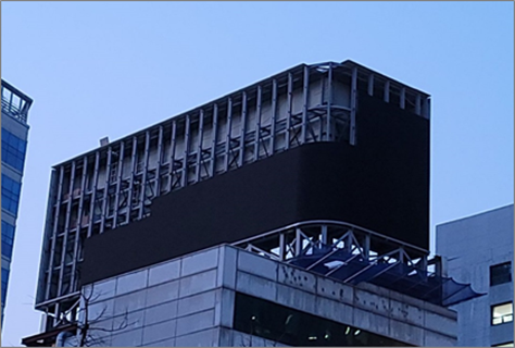 평면 전광판을 리뉴얼하여 라운드형 LED 전광판으로 제작하면 평면 부분과 곡선 부분을 모두 이용할 수 있어 화면 통합, 분할이 자유로우므로 형태는 물론 운용 면에서도 기존 전광판과는 다른, 여러모로 특이성 있는 광고 표출이 가능합니다. 예를 들어 월드컵이나 올림픽과 같은 이벤트가 있을 때는 메인 스크린에서 실시간으로 경기를 중계하면서, 서브 스크린에서는 광고를 송출하는 형태로 운용할 수 있겠죠. 그리고 마지막으로 라운드형 LED 전광판이라는 광고매체의 홍보와 그 효과를 극대화하여 보여주기 위한 아나몰픽 3D 미디어 아트 영상을 제작하게 되었습니다.