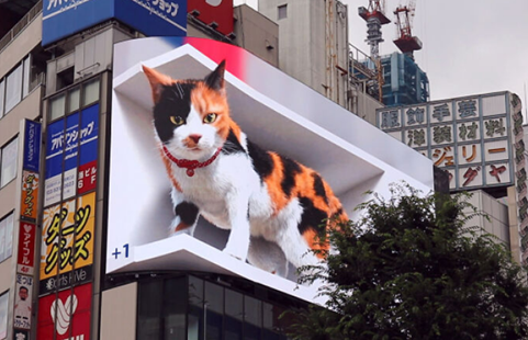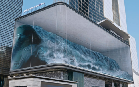 그리고 2D의 평면 캠버스와 화면을 넘어 실제 3D 공간인 라운드형 LED 전광판을 이용한다면 이러한 눈속임 효과는 더욱더 커지게 됩니다.