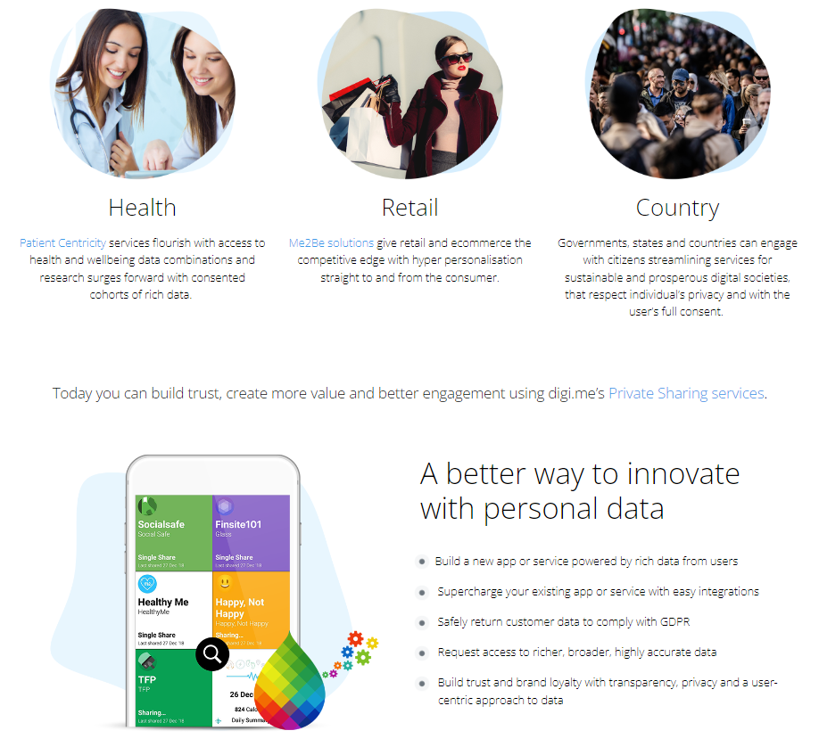 디지미는 2009년에 설립돼 개인 데이터 저장소(Personal Data Store, PDS)를 운영하고 있다. 디지미는 개인 데이터가 필요한 기업들에게 미리 개인들이 동의해서 저장해 놓은 정보를 제공하는 ‘플랫폼’ 역할을 한다.