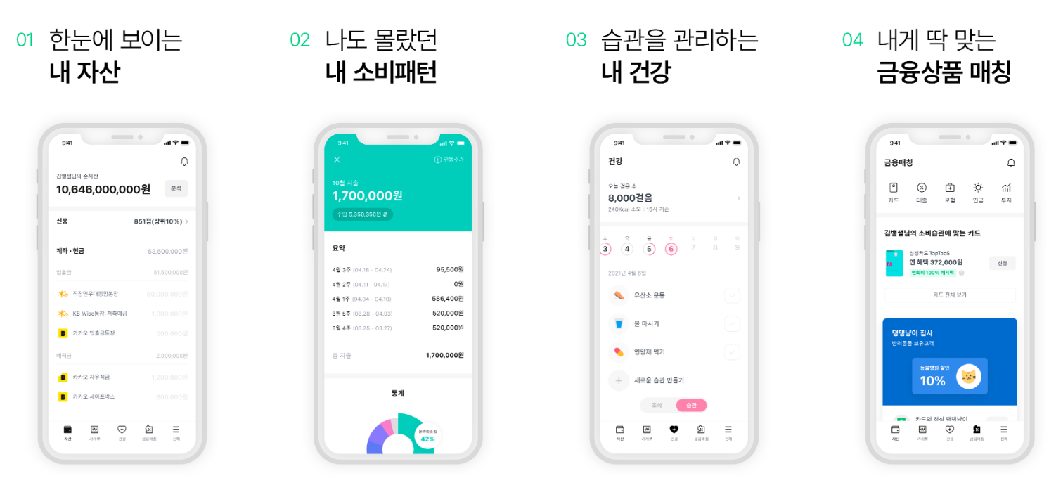 국내 최초로 자산 관리 서비스 앱을 출시했다. 2021년 12월 기준으로 누적 다운로드 1,000만 회를 기록했다. 데이터 연결 속도를 90%가량 단축한 것과 고객 편의성을 대폭 개선한 것이 인기 요인이다. 앞으로는 금융 정보뿐만 아니라 건강 데이터까지 사업을 확장할 예정이어서 ‘종합 마이 데이터 플랫폼’으로 성장할 계획을 세우고 있다.
