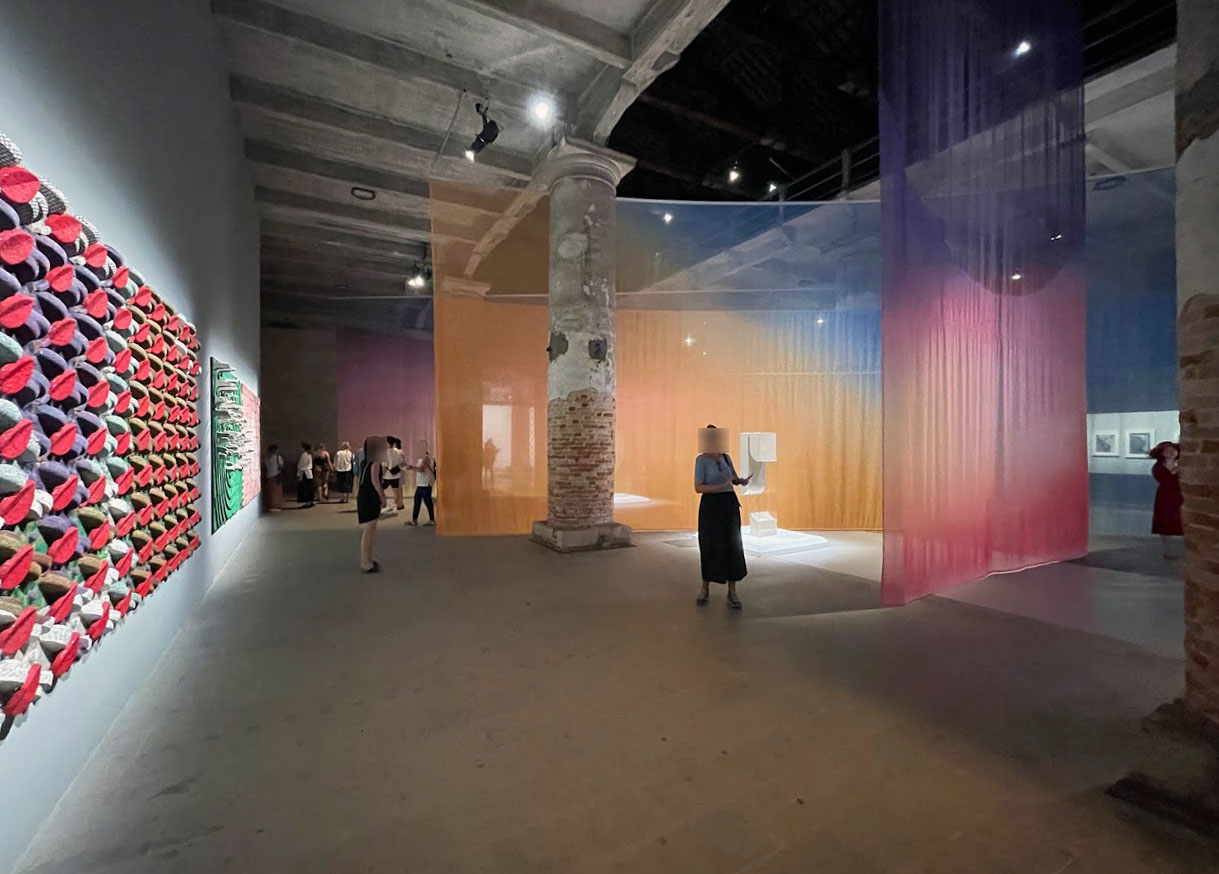 미로와 같은 전시장 입구에서부터 압도적인 규모감을 자랑하는 설치 미술들이 곳곳에 위치한 아르세날레는 올해의 주제를 아티스트만의 다양한 방식으로 해석한 다채로운 작품들을 하나의 동선으로 흘러가며 즐길 수 있습니다.
