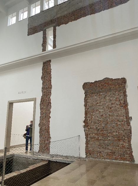 독일관 1909년에 지어진 바이에르관을 1912년 독일관으로 명칭을 변경하였고 1938년 증축을 걸쳐 지금의 모습을 가지게 되었다고 합니다. 작가 아이호른은 ‘기억과 저항의 장소’로서 원래의 공간을 발견하기 위해 1938년 파시스트 철학을 반영한 리모델링을 해체하였습니다.