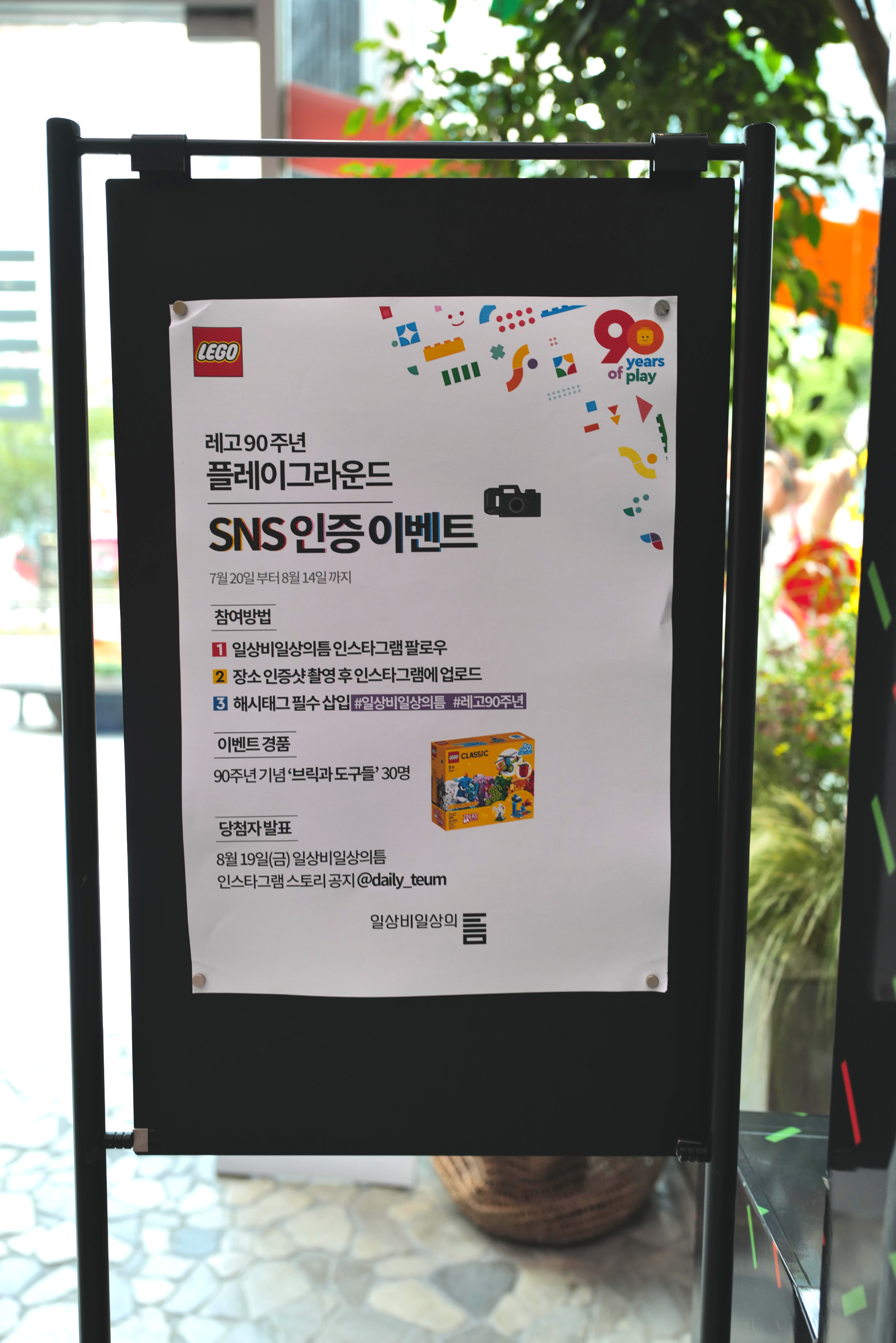 LEGO가 90주년을 맞이하여, 강남역 복합문화공간인 @일상비일상의틈(이하 '틈')에서 '레고 90주년 플레이그라운드' 팝업전시관을 개설했습니다. 이번 전시는 레고그룹 창립 90주년을 맞아 무료로 개최되며 아이부터 어른까지 누구나 즐길 수 있는 체험 공간입니다.