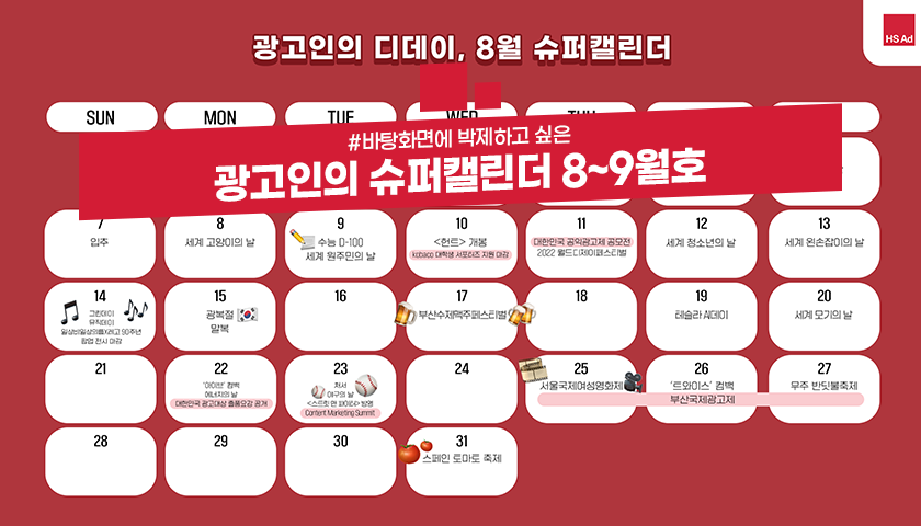 광고인이라면 알아 두어야 할 8~9월의 디데이를 모아모아!