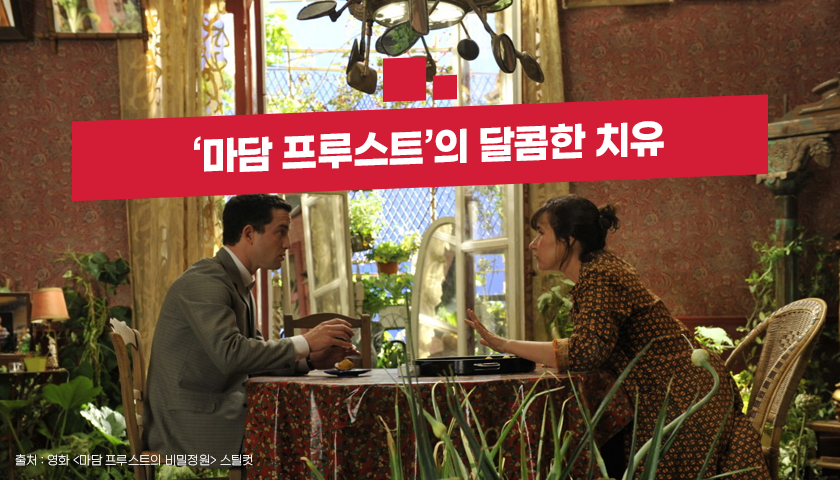 그럼 이제 영화로 들어가 보겠습니다. <마담 프루스트의 비밀정원>은 프랑스에서 2013년에, 한국에서는 2014년에 개봉하며 좋은 반응을 얻은 영화입니다. 묘하게 동화적인 분위기와 근사한 프랑스 디저트의 등장에 마음을 뺏기기 쉬운 작품이지요. 그러나 마냥 동화적이라고 하기엔 어딘지 어둡고 우울한 톤이 작품 전반을 이끌어갑니다.
