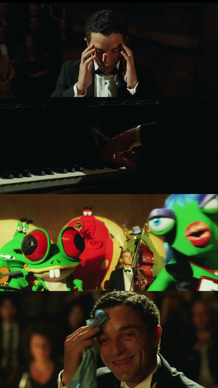 <마담 프루스트>는 서양 의학이 간과하고 있는 감각적 영역의 힘을 보여주고자 합니다. 이를 가장 효과적으로 보여주는 것이 음식인 것이고요. 한편 서양에도 존재하는 감각적 영역은 음악으로 표상되는데요. 이는 피아노를 치는 폴, 뮤지컬처럼 펼쳐지는 기억 여행, 기억 여행을 위해 음악이 꼭 필요하다는 설정으로 나타납니다. 이렇듯 영화는 동양과 서양을 분리된 양극으로 제시하기보다는, 양쪽 접근이 융화되기를 바라는 모습을 보여줍니다. 실제로 동서양 세계관의 맞물림은 폴이 중국인 첼리스트와 결혼하여 아이를 낳는 모습으로 직접적으로 제시되지요.