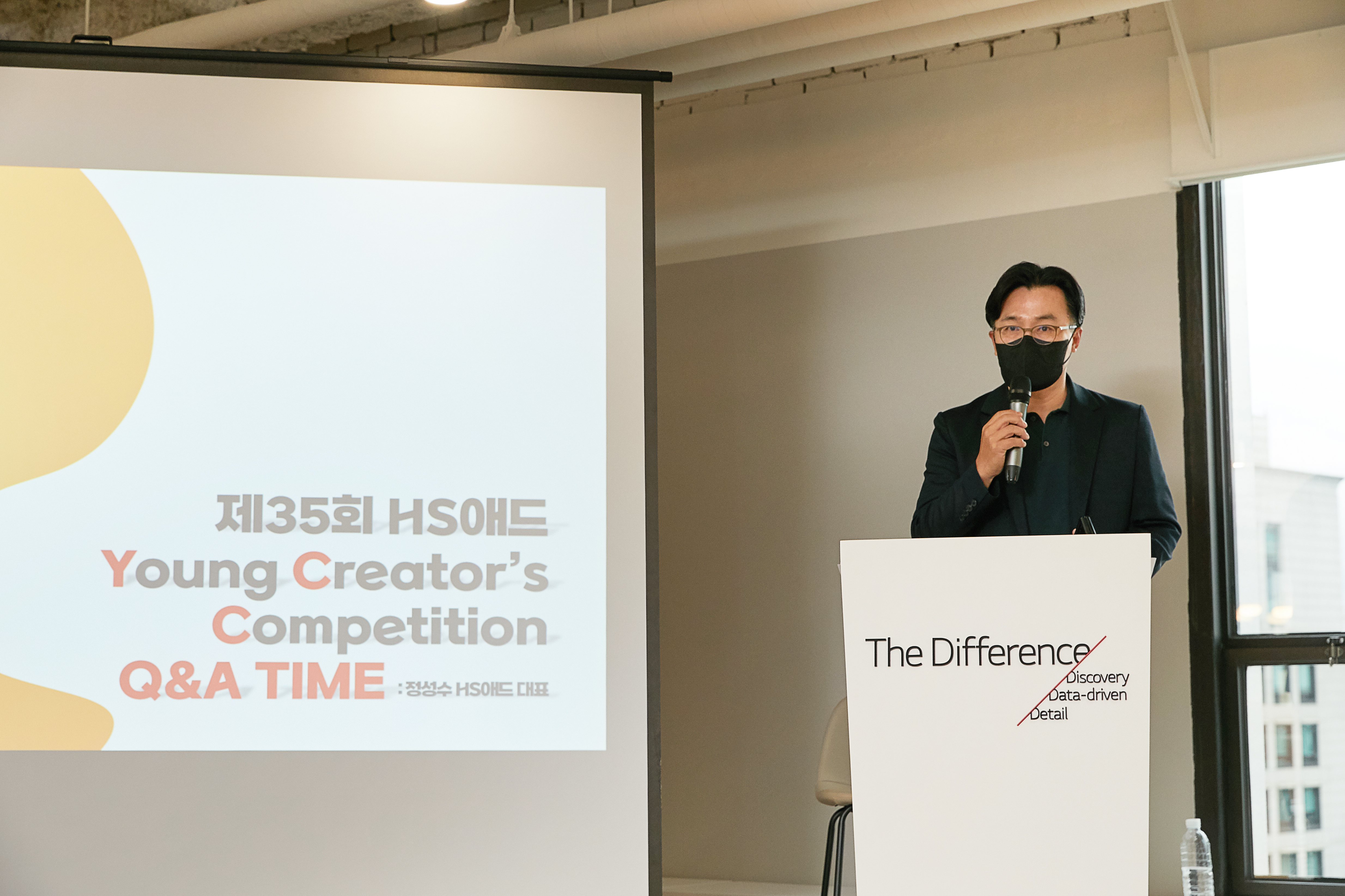 짧은 인터뷰 후, HS애드 정성수 대표님의 Q&A TIME이 진행되었습니다. 시상식 전, YCC 공모전 참가자들로부터 전달받은 질문들 중 3가지 질문을 시상식 자리에서 답변해주셨습니다. 예비 광고인 분들이 꿈을 펼쳐 나가는데 도움이 되는 시간이 됐기를!