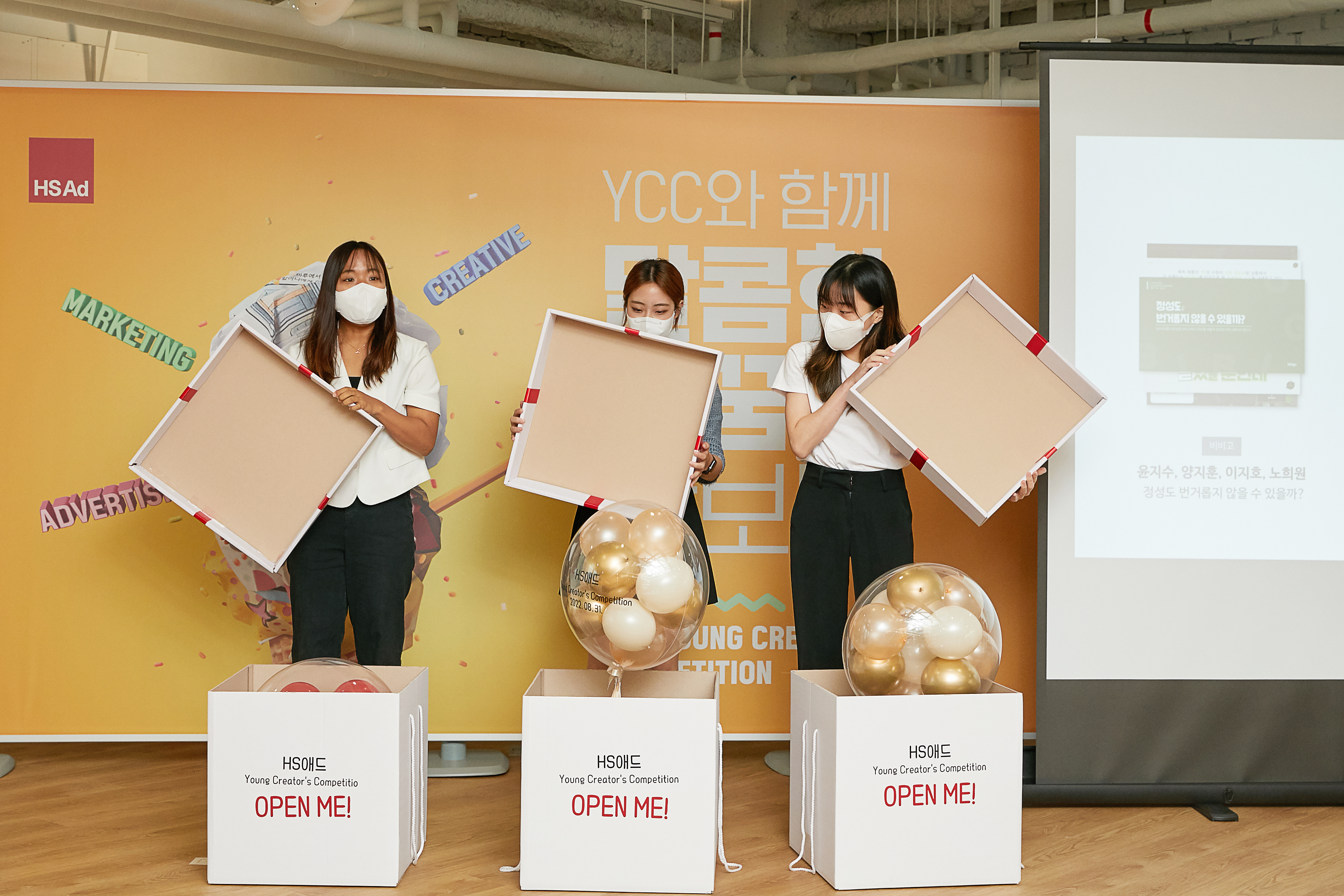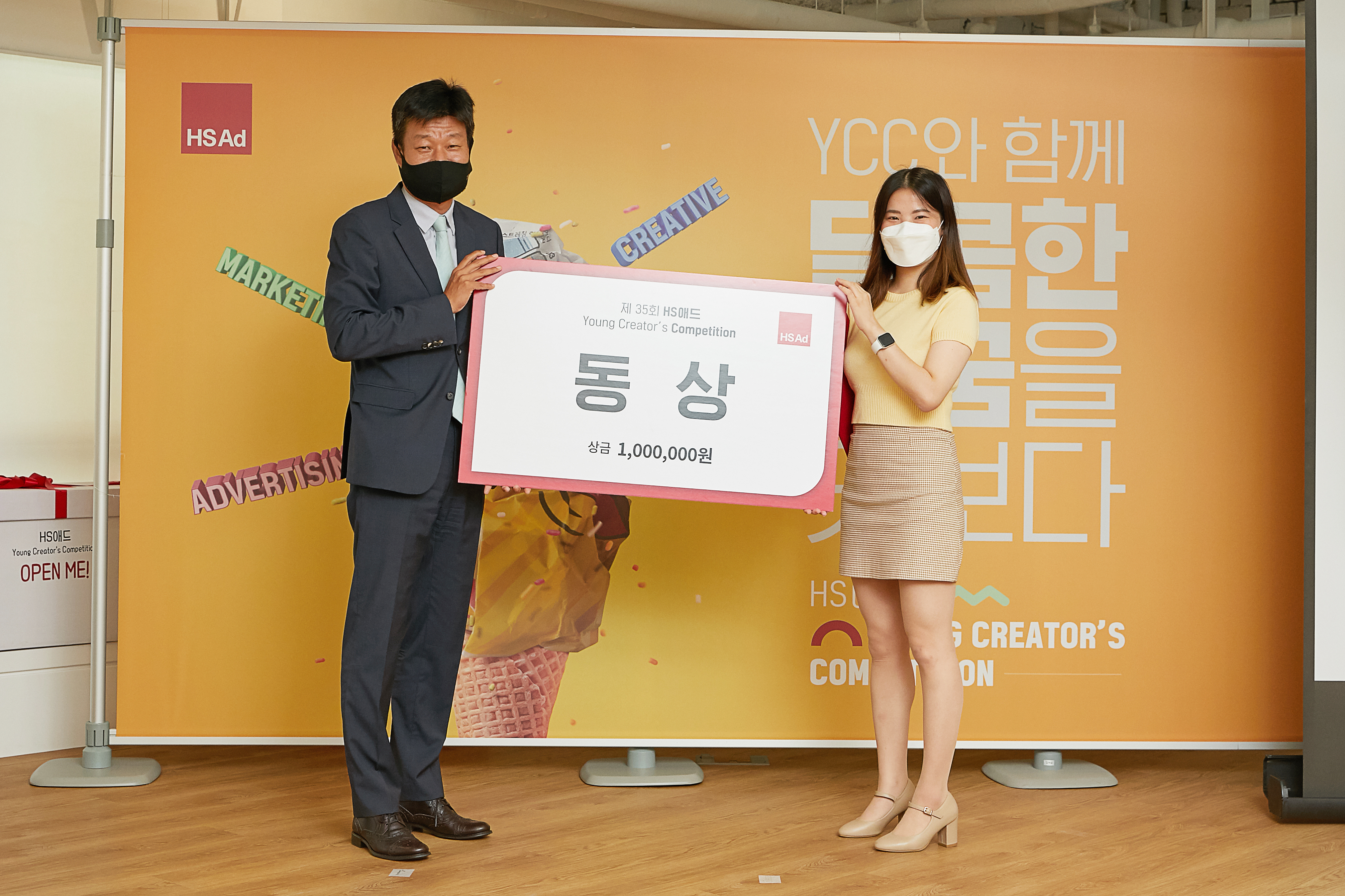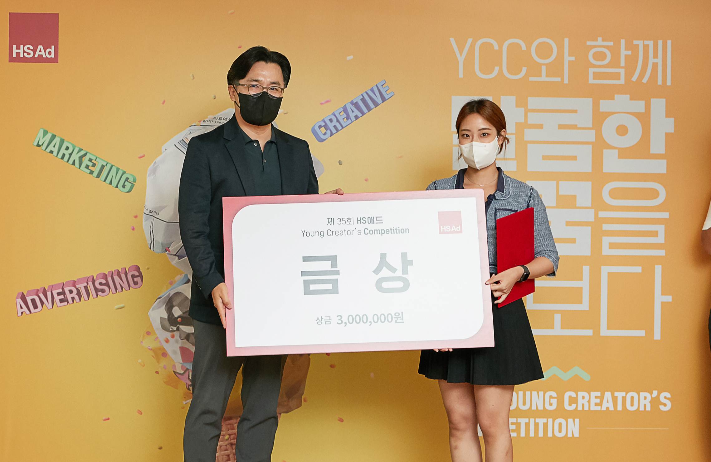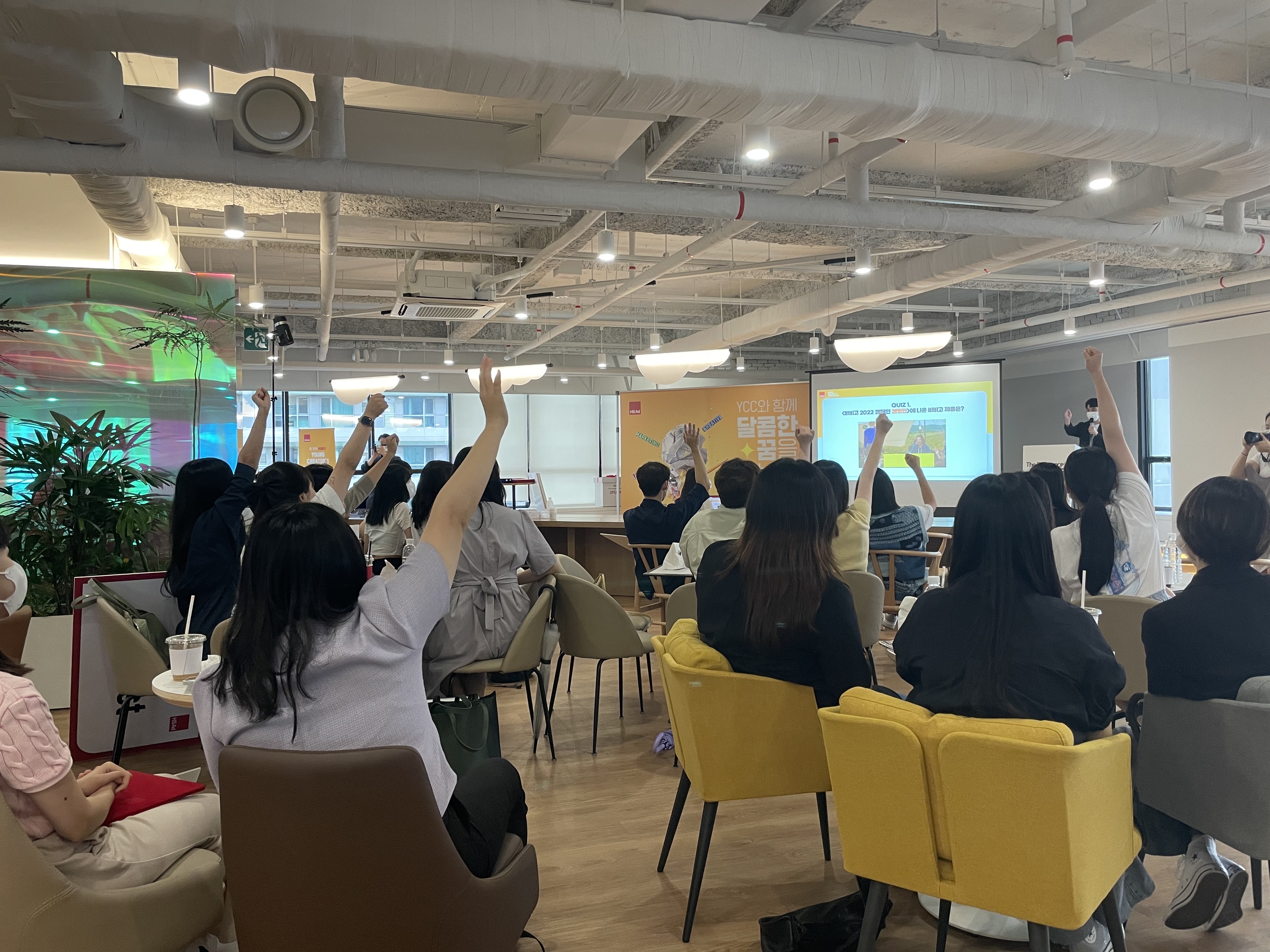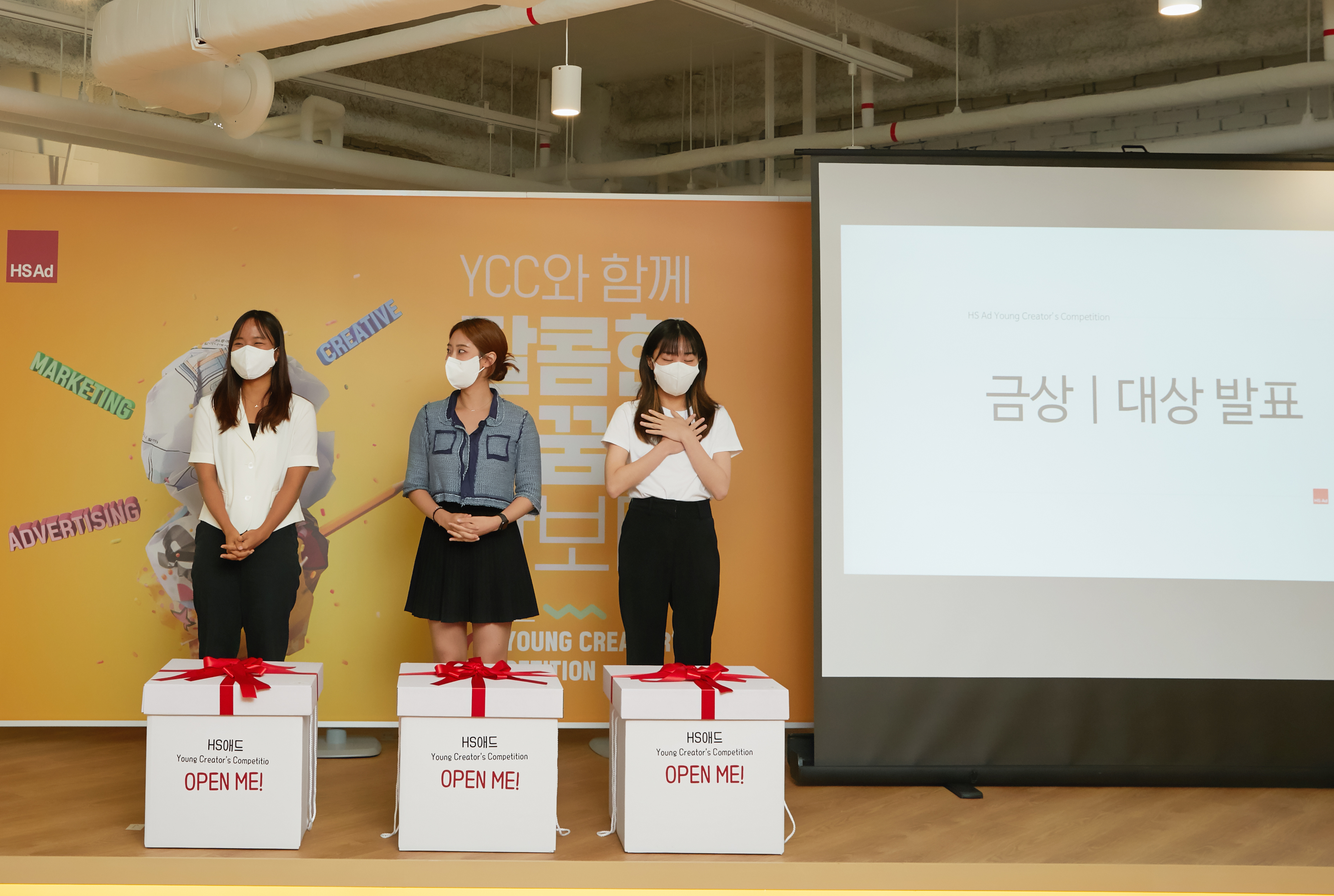 8월의 마지막 날, HS애드 Young Creator's Competition 시상식이 진행됐습니다. 1988년부터 시작된 YCC 공모전은 올해로 35회를 맞이한 긴 역사를 가지고 있습니다. 이번 공모전은 기획서와 크리에이티브 총 2가지 부문으로 나뉘어 진행됐으며, 많은 예비 광고인들의 뜨거운 관심과 사랑을 받았습니다. YCC 공모전을 통해 자신들의 꿈을 마음껏 보여준 팀 중, 기획서 부문에서 8팀 그리고 크리에이티브 부문에서 7팀 총 15팀이 시상식에 함께 했습니다.