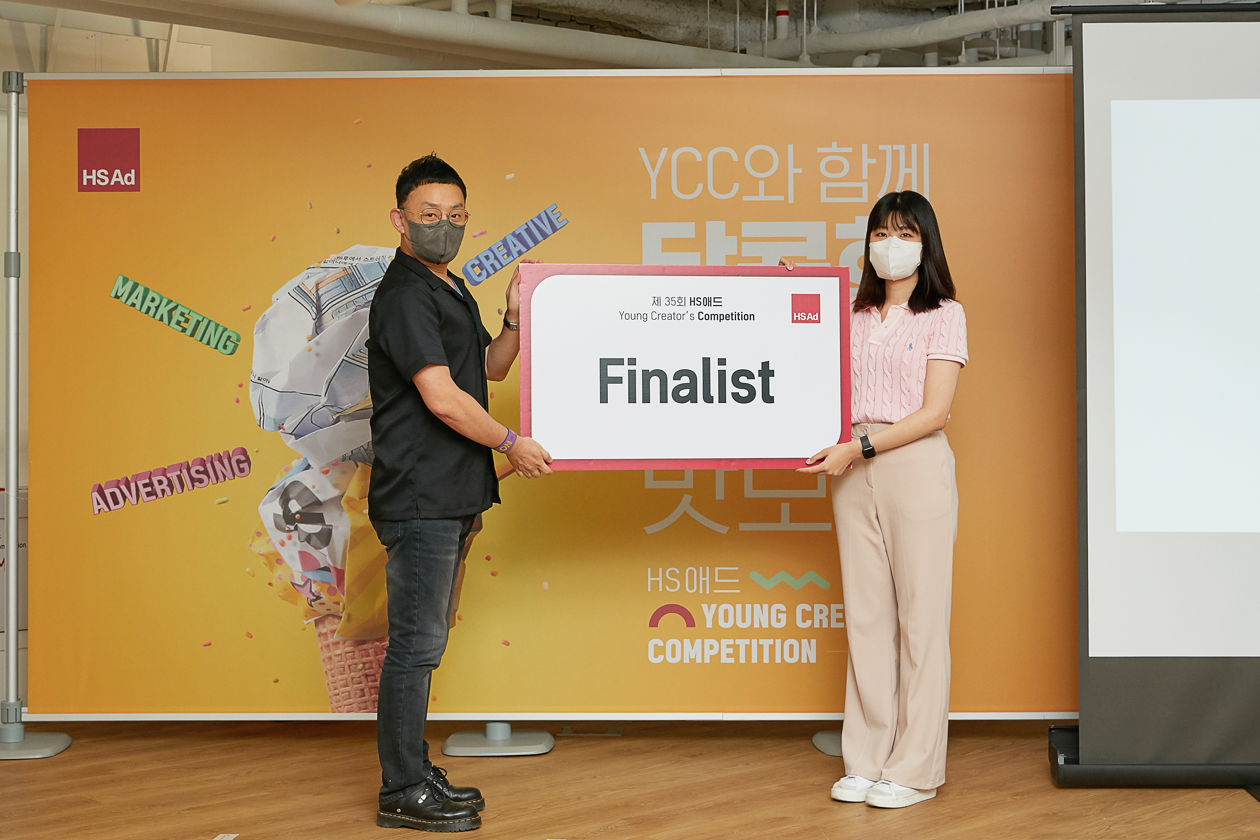 HS애드의 광고들로 시작된 이번 시상식은 파이널리스트(Finalist) 시상을 시작으로 서로를 향한 박수 소리와 환호 소리가 끊이지 않았습니다. '파이널리스트'는 기획서 3팀, 크리에이티브 3팀 총 6팀이 수상하게 되었습니다. 아쉽게도 함께 하지 못한 팀의 상장은 HS애드가 안전하게 전달해드릴 예정입니다. 😎