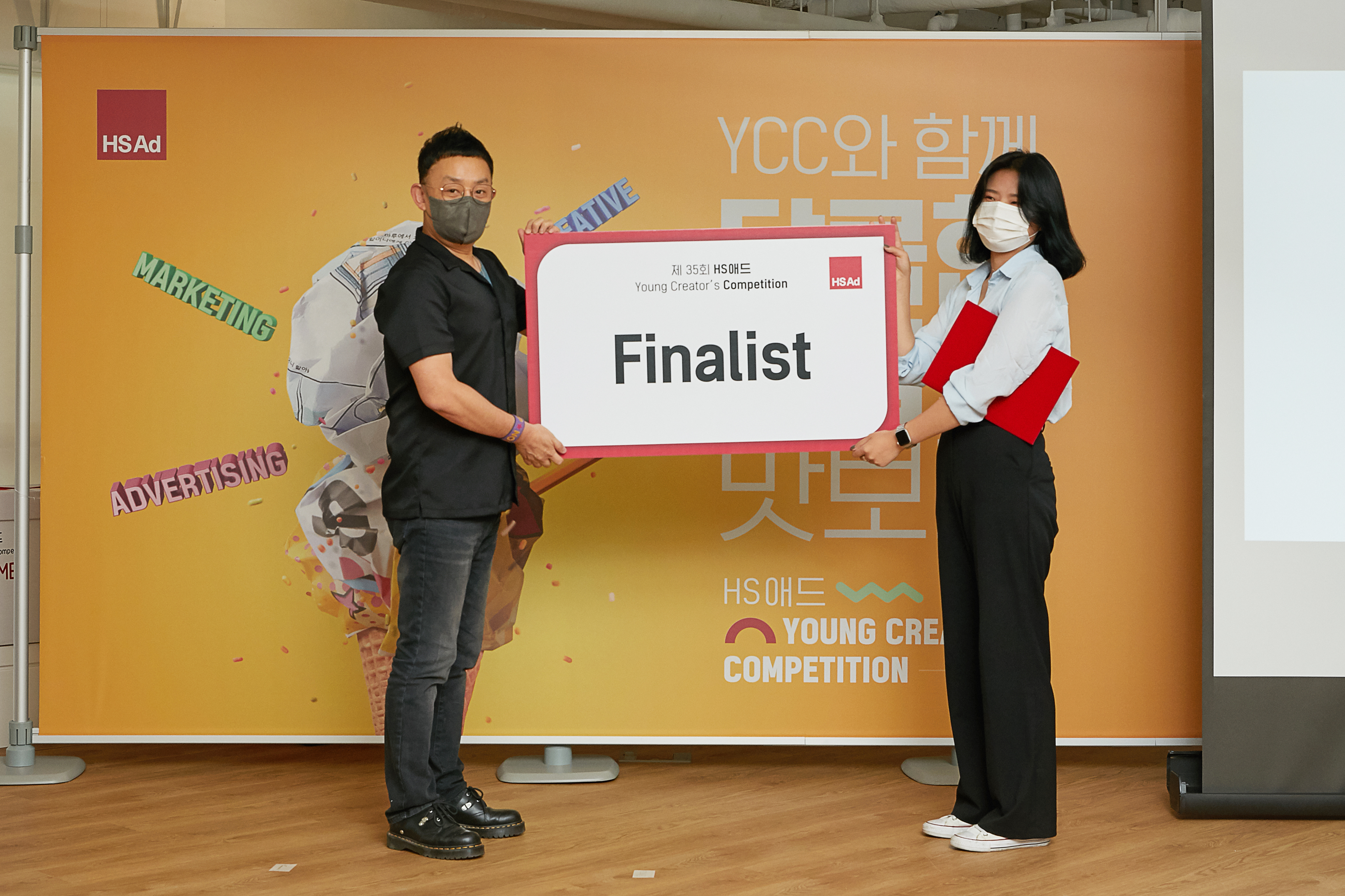 HS애드의 광고들로 시작된 이번 시상식은 파이널리스트(Finalist) 시상을 시작으로 서로를 향한 박수 소리와 환호 소리가 끊이지 않았습니다. '파이널리스트'는 기획서 3팀, 크리에이티브 3팀 총 6팀이 수상하게 되었습니다. 아쉽게도 함께 하지 못한 팀의 상장은 HS애드가 안전하게 전달해드릴 예정입니다. 😎
