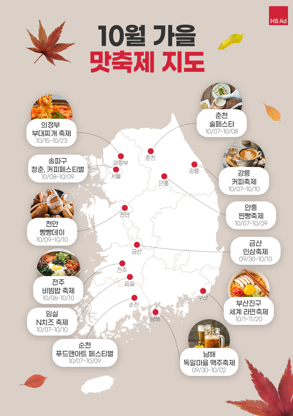 여행의 계절 가을, '가을 맛축제 지도'와 함께 전국 각지의 '맛'을 느껴보는 시간이 되기를😋