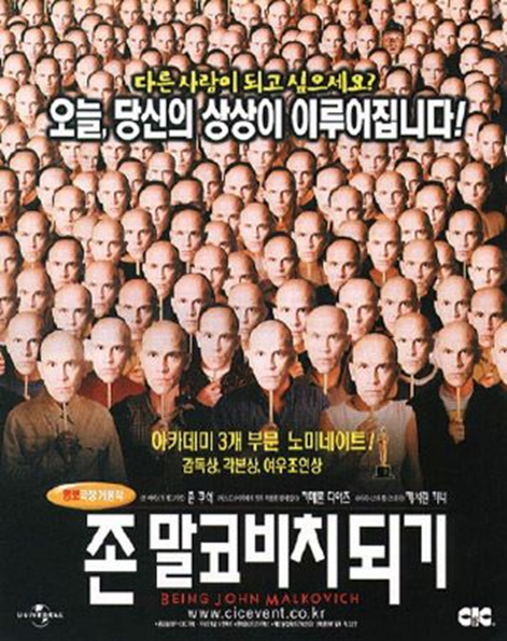 이 뮤직비디오는 장면이 가지는 상징성을 해석하는 것도 재밌지만, 영상에 담긴 테크닉을 뜯어보는 것도 의미 있습니다. 표현 방식에 있어 옛날의 명작을 오마주 하는 방식들이 여럿 있는데요. 80~90년대의 뮤직비디오를 오마주 하기도 하고, 특히 수많은 대머리들 사이에서 중간에서 가사를 내뱉는 켄드릭 라마의 모습을 담은 장면도 많이 회자됩니다. 저 역시 어디서 본 듯하면서도 비주얼적으로 충격적인 느낌이었는데, 이는 영화 <존 말코 비치되기>가 떠올랐기 때문인 것 같습니다.