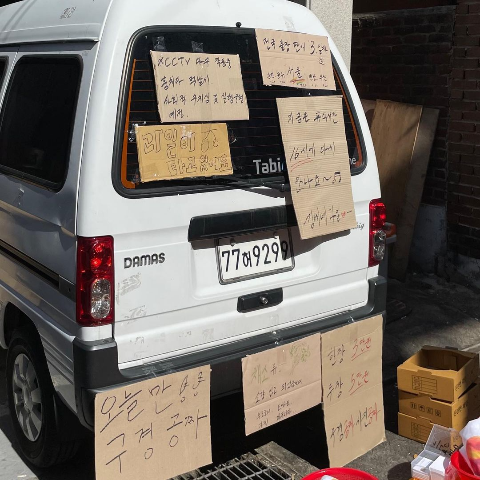 신촌 현대백화점 오픈런하게 만든 김씨네과일. 다마스를 끌고 전국을 돌아다니며 과일티를 판매하고 있는 김씨네 과일은 시장에서 과일을 파는 듯한 비주얼과 콘셉트로 큰 인기를 끌고 있어요.
