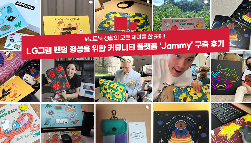 MZ세대에게 노트북 생활에 필요한 것들을 제공하면서 자연스럽게 그램을 접하게 하고, 브랜드와의 관계를 돈독하게 하기 위해 만든 플랫폼이기에 장기적인 플랜이 중요했던 만큼, 심혈을 기울여 Jammy를 오픈하였습니다.
