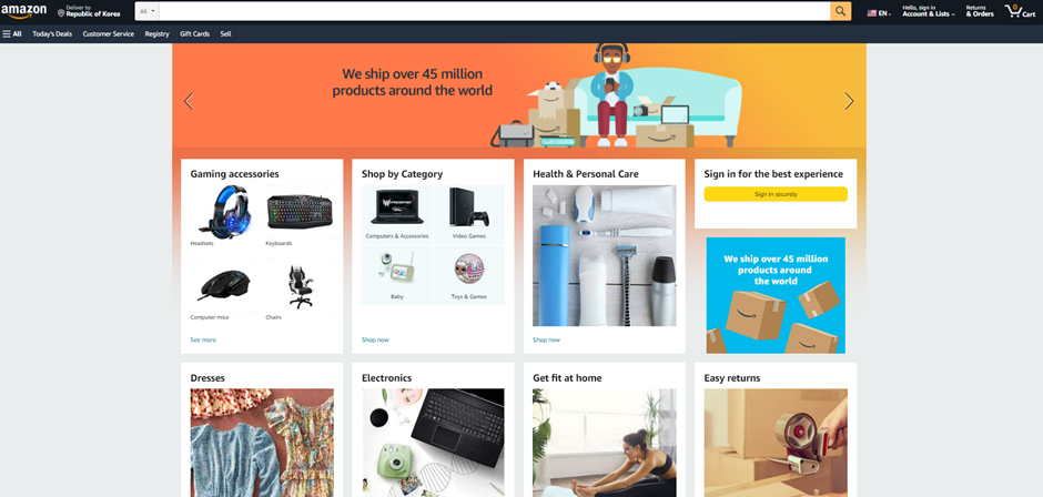 출처: 아마존 공식 홈페이지 (https://www.amazon.com/)