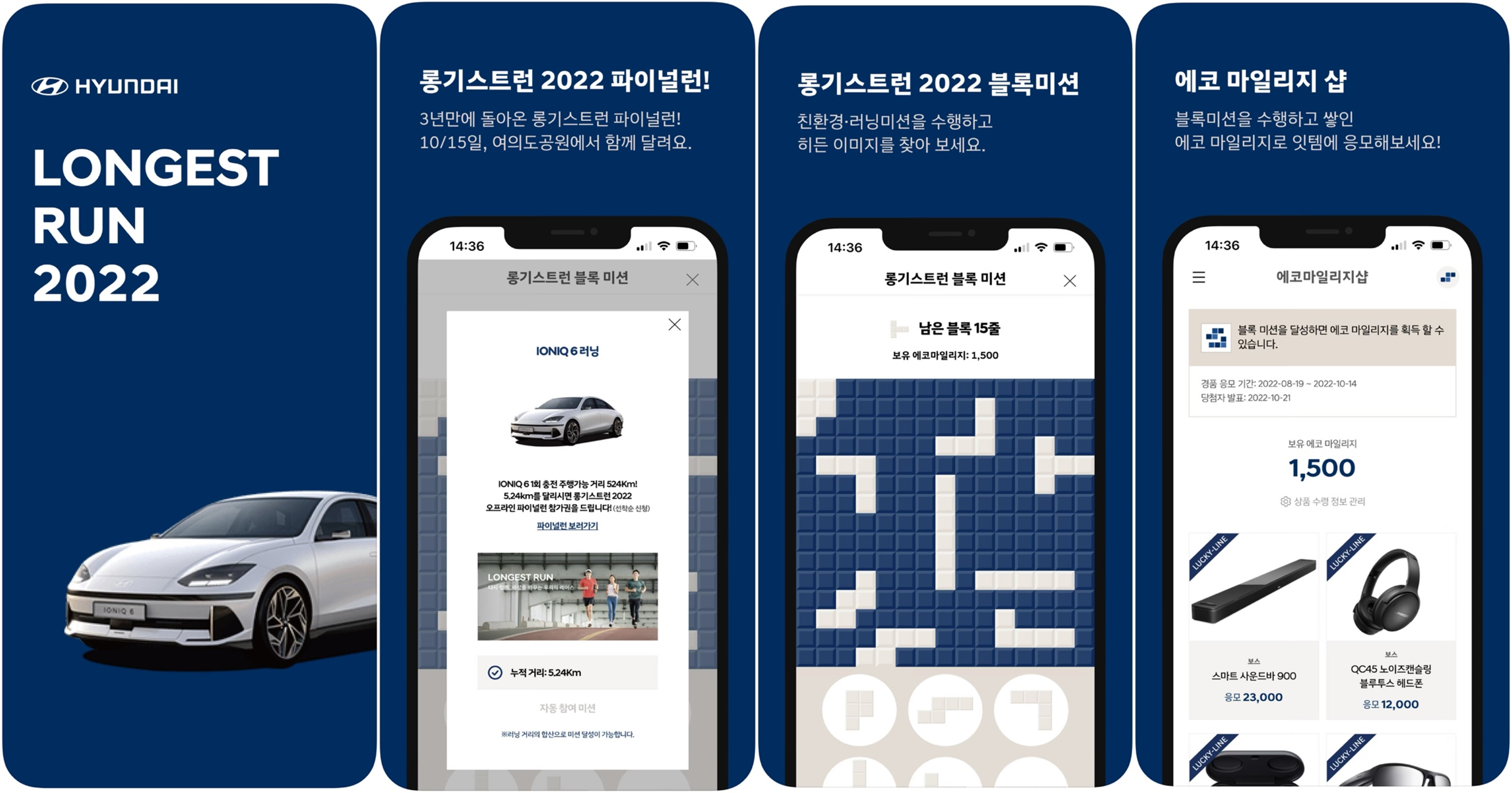 블록 미션 중 현대자동차의 새로운 전기차인 아이오닉6의 주행 가능 거리 524km를 상징하는 5.24km를 달리면 무료로 10K 파이널런에 참여할 수 있는 이벤트를 진행하여, 유료로 참여하는 여타 대회와는 다른 차별화 프로세스로 공유가치 창출(CSV,Creating Shared Value)을 통해 사회 임팩트를 확산하고, 지속 가능한 기업 생태계를 구축하고자 하는 현대자동차의 취지를 반영하였습니다.