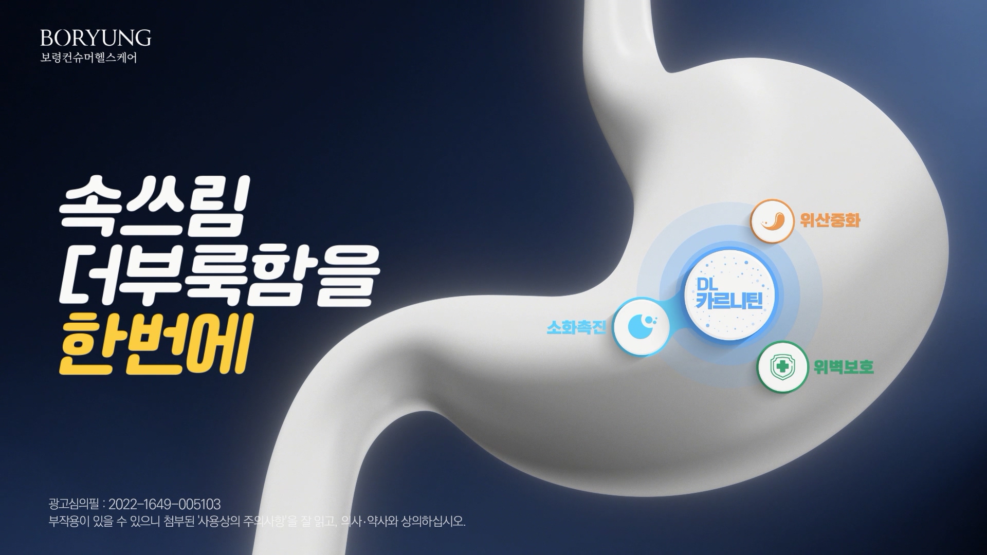 그러한 겔포스 브랜드에서 기존의 속 쓰림에 효과가 있는 제산 능력에 DL-카르니틴염산염 성분을 추가하여 더부룩함까지 개선시켜주는 겔포스엘을 출시했습니다. 보기만해도 속이 편안해지는 겔포스엘의 광고, 궁금하지 않으신가요? 지금 시작합니다.