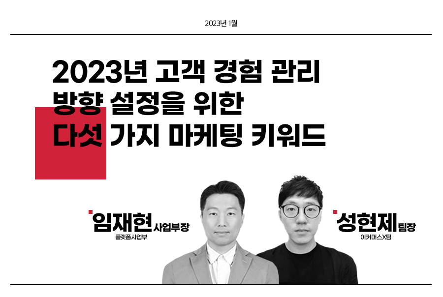 전례 없는 수준의 ‘불안정성’을 경험하고 있는 시대, 2023년에 대부분의 기업은 안정성을 최우선 순위로 두고 움직일 것으로 보입니다. 하지만, 고객은 위에서 기술한 다섯 가지 키워드 ① Web 3.0, ② OTT Media, ③ Super App, ④ Adaptive AI, ⑤ D2C에 반응하며 이미 변화하고 있습니다. 다가오는 2023년, 고객의 변화에 선제적으로 대응한 다양한 시도를 통해, 차별화된 고객 경험 관리 사례가 끊임없이 이어지길 기대합니다.