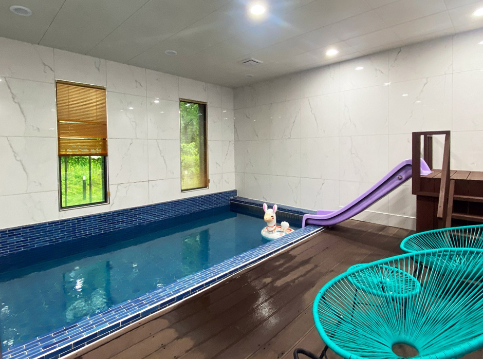 ▲ 각 객실에 개인풀이 딸린 숙박 시설을 일컫는 풀빌라 (Pool Villa)를 어린이 놀이 시설과 결합한 모델인 키즈 풀빌라,
