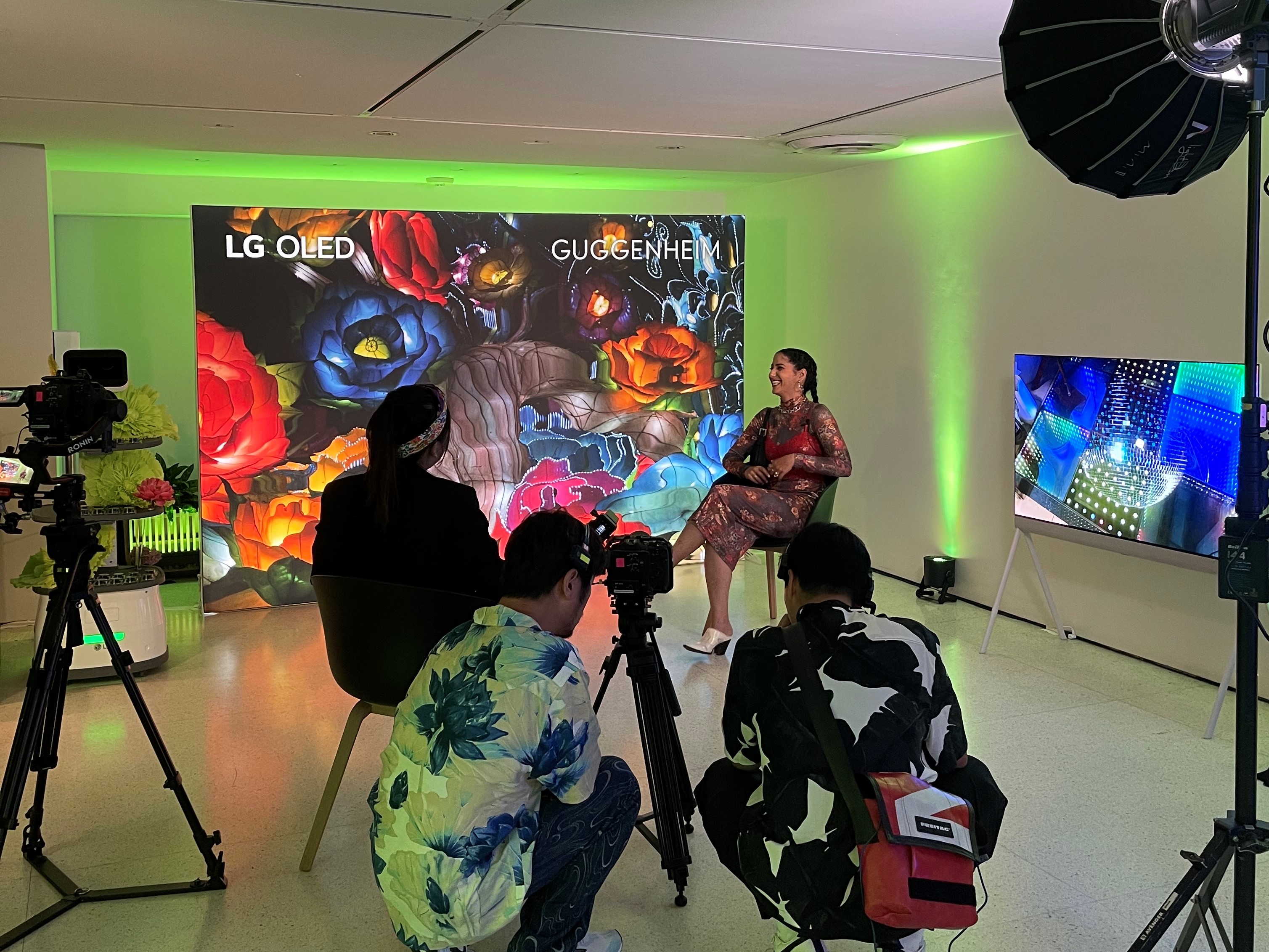 투명 OLED는 건축, 모빌리티 등 여러 산업에 활용되는 것을 넘어 아티스트의 무궁무진한 상상력을 펼칠 수 있는 최첨단 디지털 캔버스로 주목받고 있습니다. LG는 이를 더 많은 아티스트와 예술계 종사자에게 선보이려는 니즈가 있었죠. 파트너십 이후 첫 YCC 파티를 열던 2022년, 구겐하임도 파티에서 양측의 파트너십을 상징적으로 보여줄 수 있는 아이코닉한 센터피스를 고민하고 있었습니다.