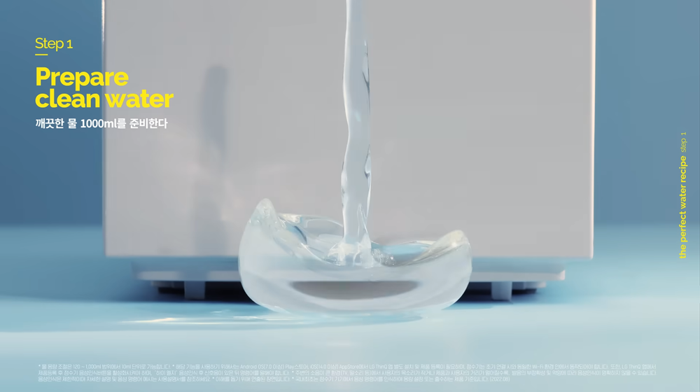 이번 LG 퓨리케어 오브제컬렉션 정수기 광고는 스톱모션을 통해 시각적 재미를 더했어요. 퓨리케어에게 원하는 물의 양을 말하면, 퓨리케어가 '10가지 과정'을 거쳐, 나에게 물을 전달해 줘요. '정수의 10가지 스텝'이 궁금하다면? 하단 영상으로 통해 확인해 보세요!