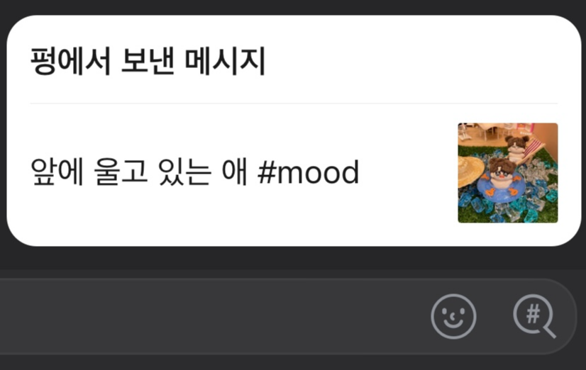 또한, 친구의 펑에 답글을 달면 1:1 개인 채팅방으로 카톡이 전달돼요.