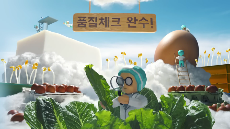 <분 단위 초신선 장보기 배민B마트>의 경우에는, B마트의 서비스영역 확장을 알리는 것이 목적이었습니다. 오토바이를 타고 신속하게 배달하던 배달이가 신속함을 넘어 신선함 까지 꼼꼼하게 제품 검수하는 모습을 담음으로써, 배민이 가진 ‘간편식&초신속’의 이미지를 ‘신선식품&초신선’의 영역까지 말이죠. 배민B마트 서비스에 대한 소비자 인식 확장의 역할을 <배달이>라는 캐릭터가 충실히 수행해 준 셈이죠.