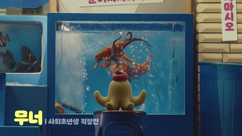 최성원 CD님💪 – 처음에는 ‘문어지지마’라는 콘셉트를 가지고 모델을 활용해서 문어 탈을 쓰고 나오는 그런 식의 크리에이티브를 구성했었는데요. LG유플러스에서 무너 캐릭터를 제안해 주셔서, 타겟에게 더 공감이 될 수 있는 크리에이티브가 탄생하게 됐습니다.